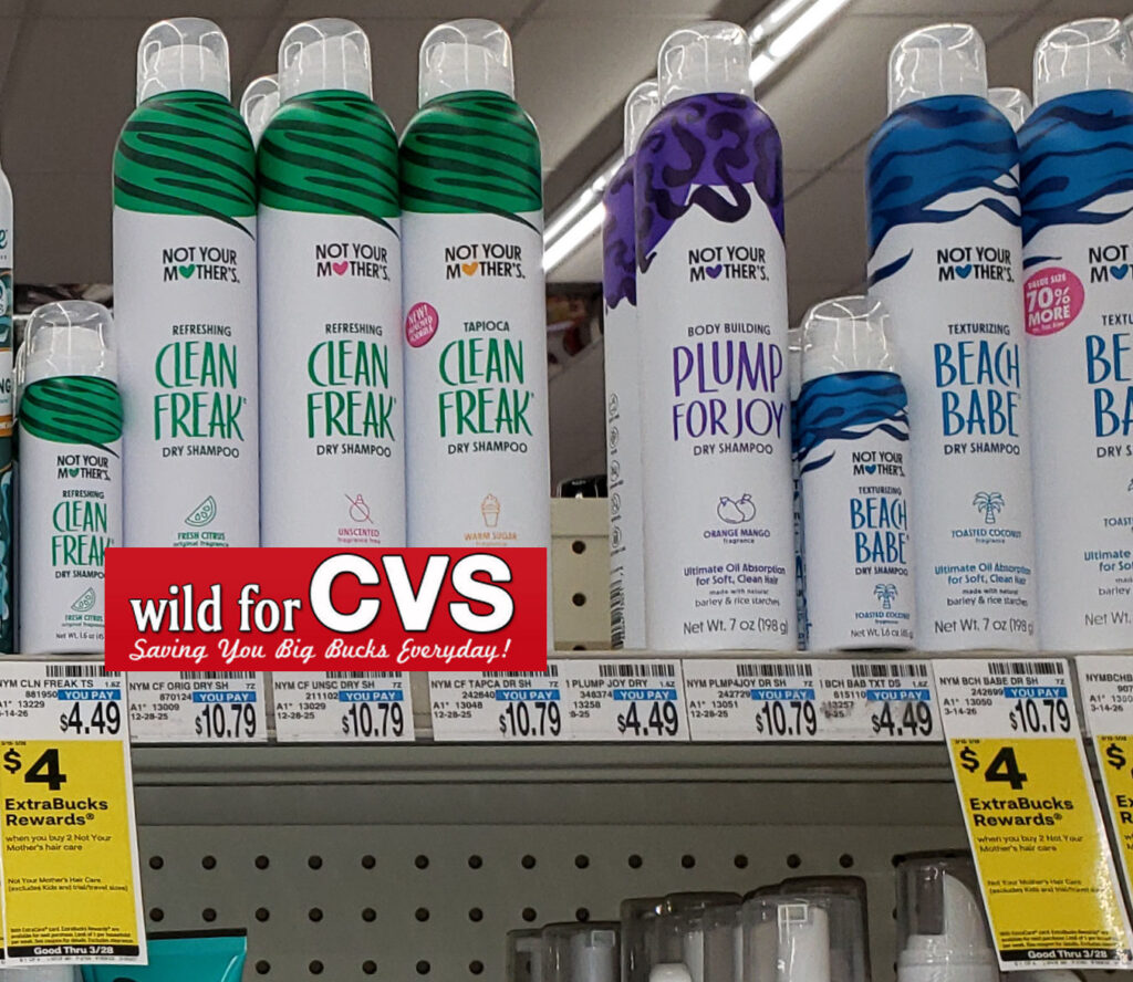 This week you’ll earn $4 ECB for buying two select dry shampoo products. This deal includes the 1.6 oz Not Your Mother’s Clean Freak Dry Shampoo and beach Babe. Be sure to grab this one from next to the full size dry shampoo products and not the travel aisle. They have different UPC codes.