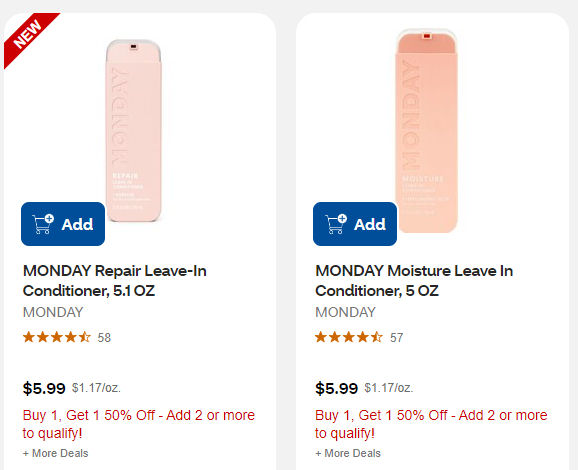 Buy (2) Monday Leave In Conditioner 5 oz, $5.99 B1G1 50% off Sale Price