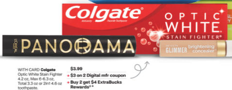 Buy (2) Colgate Optic White Stain Fighter 4.2 oz, Max 6-6.3 oz, Total 3.3 oz or 2in1 4.6 oz toothpaste $3.99 Sale Price