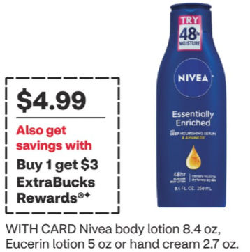Buy (1) Nivea Body Lotion 8.4 oz or Eucerin Lotion 5oz or Hand Cream 2.7 oz $4.99 Sale Price