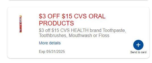 $3/$15 CVS Health brand toothpaste, toothbrushes, mouthwash or floss — available for some