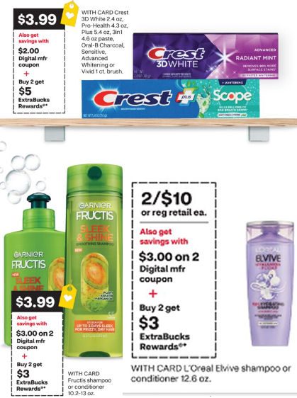 $5 ECB WYB 2 Crest 3D White 2.4 oz, Pro-Health 4.3 oz, Plus 5.4 oz, 3in1 4.6 oz paste, Oral-B Charcoal, Sensitive, Advanced Whitening or Vivid 1 ct. brush $3.99