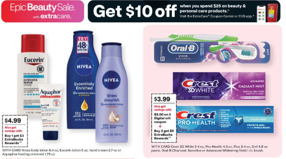 $3 ECB WYB 1 Nivea body lotion 8.4 oz, Eucerin lotion 5 oz, hand cream 2.7 oz or Aquaphor healing ointment 1.75 oz. $4.99
