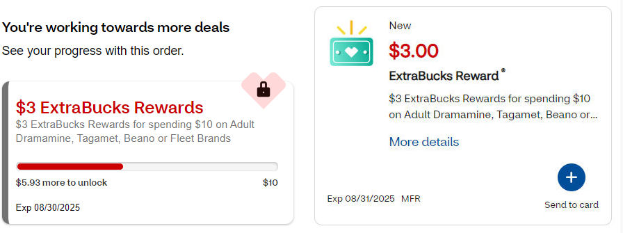Has CVS changed the way they track threshold deals ONLINE? I was able to grab a threshold deal this week by spending $11xx BEFORE ECBs used to earn the $3 ECB (for spending $10.) I did pay with ECB’s, and I still got my $3 ECB. Notoriously you must spend the threshold AFTER all coupons and ECBs are used in order to earn the threshold, but this I did not do. On the Dramamine deal you can see on the left how my order information read. It reads I have $5.93 towards the $10 threshold to earn the $3 ECB. I simply finalized my order, and I still received the $3 ECB. I had spent $11xx but I had paid with some ECB’s. I don’t know if this is because I did spend $10.18 in actual money on the entire order. (I had other stuff). Perhaps because I had spend over $10 in money (not ECB’s or other coupons) somehow the entire $10 was used towards the only threshold deal in my order OR now we can pay with ECB’s towards a threshold deal and earn the ECBs online. I cannot say for sure. Will this work with MFG coupons or other CVS coupons. I don’t know since I had no MFG coupons for Dramamine. Do let us know if you’ve tried this recently, and if it has or has not worked for you. I will try something whenever a good threshold deal comes along to check on this further…