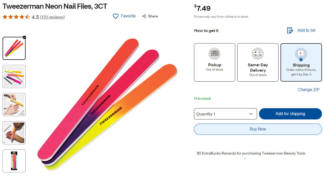 My store doesn’t carry Tweezerman but online I see the $7.49 nail files included in the ECB deal to earn $5 for buying just one item.If these are priced similarly in store, you can grab this deal or if you have Extracare Plus, you can add this deal to your online order.
