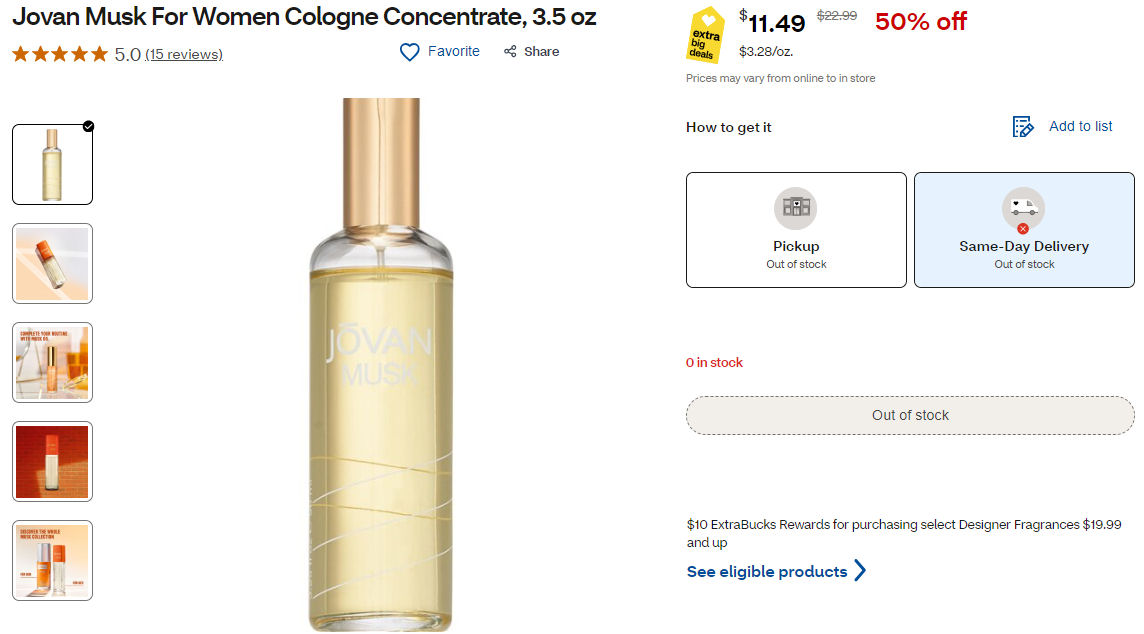 Buy (1) Jovan Musk For Women Cologne Concentrate, 3.5 oz or Revlon Charlie Eau de Toilette, 3.3 oz $11.49 50% Off Sale Price