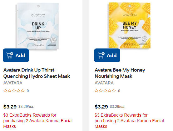I spotted this awesome deal online to earn $3 ECB for buying on 2 select masks including the Avatara which start at $3.29. MY store does not carry all these brands but if you find these at yours, it should work.