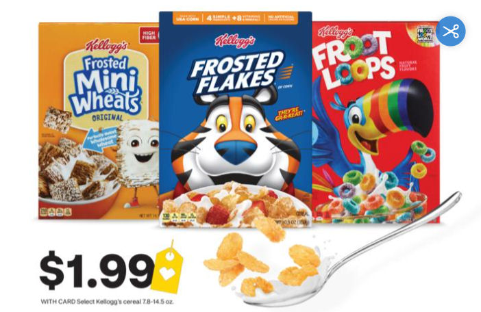 Buy (2) Kellogg’s cereals 7.8 to 14.5 oz $1.99 Sale Price