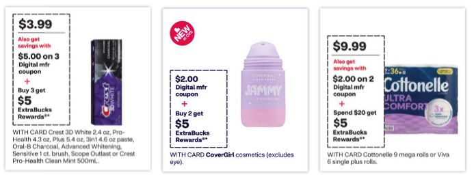 $5 ECB WYB 3 Crest 3D White 2.4 oz, Pro-Health 4.3 oz, Plus 5.4 oz, 3in1 4.6 oz paste, Oral-B Charcoal, Advanced Whitening, Sensitive 1 ct. brush, Scope Outlast or Crest Pro-Health Clean Mint 500mL $3.99