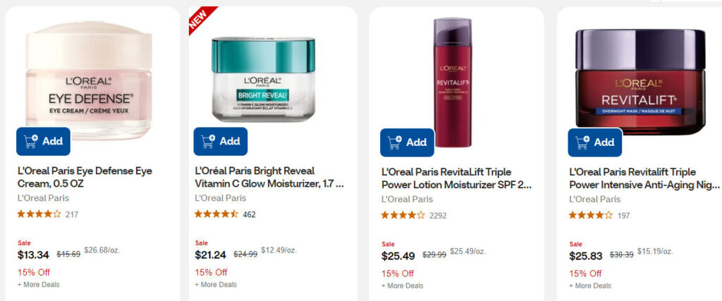 This week you’ll earn $5 ECB L’Oreal facial care product. These are for the most expensive items. I did not check out this deal in store. It wasn’t tagged, and I made no price checks 🙁 . However, online I see most of the items included in this deal are 15% off! Here is an idea or two for you to consider if you are placing an online order.